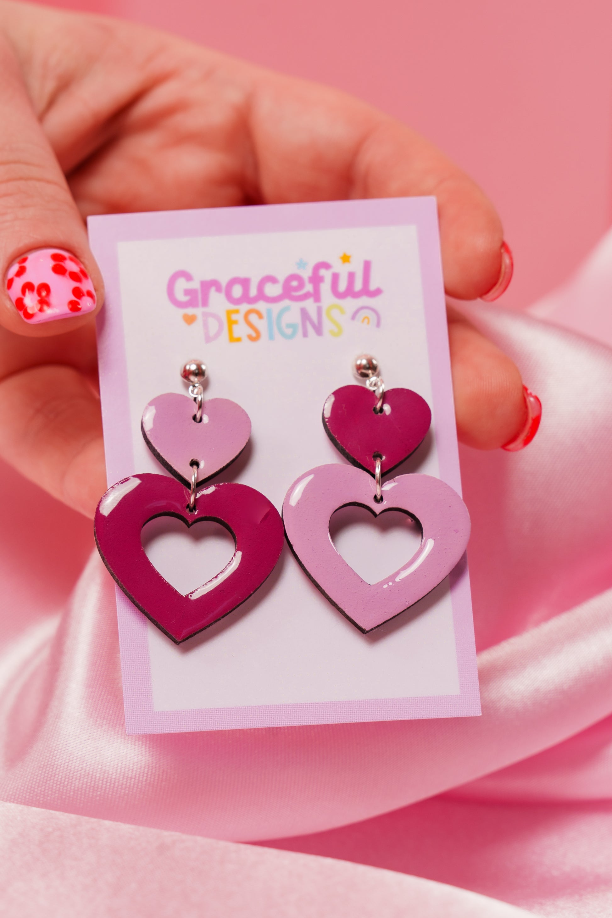 made from MDF wood that has been hand-painted in a pink and spiced purple custom paint then topped with glossy resin & to finish off silver studs