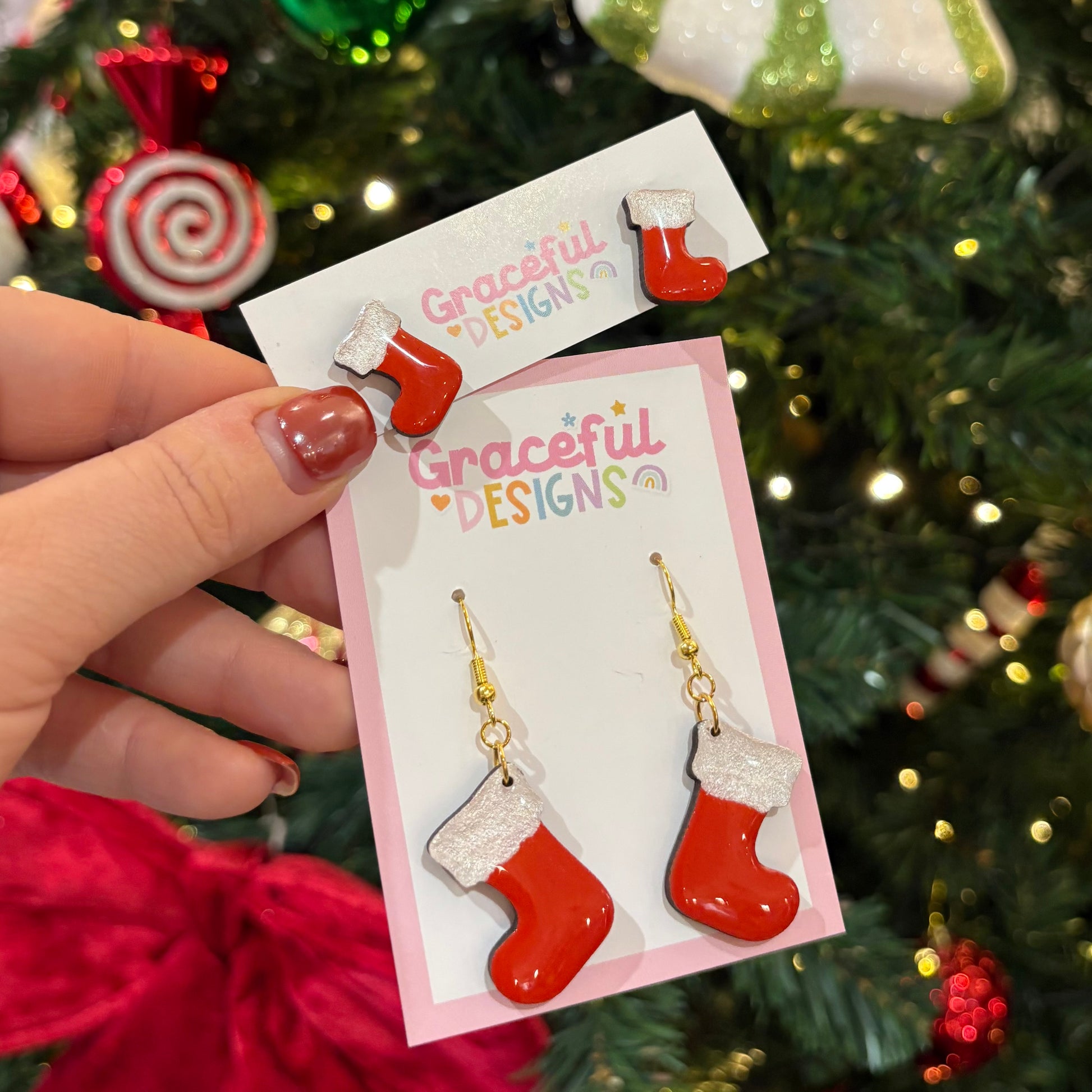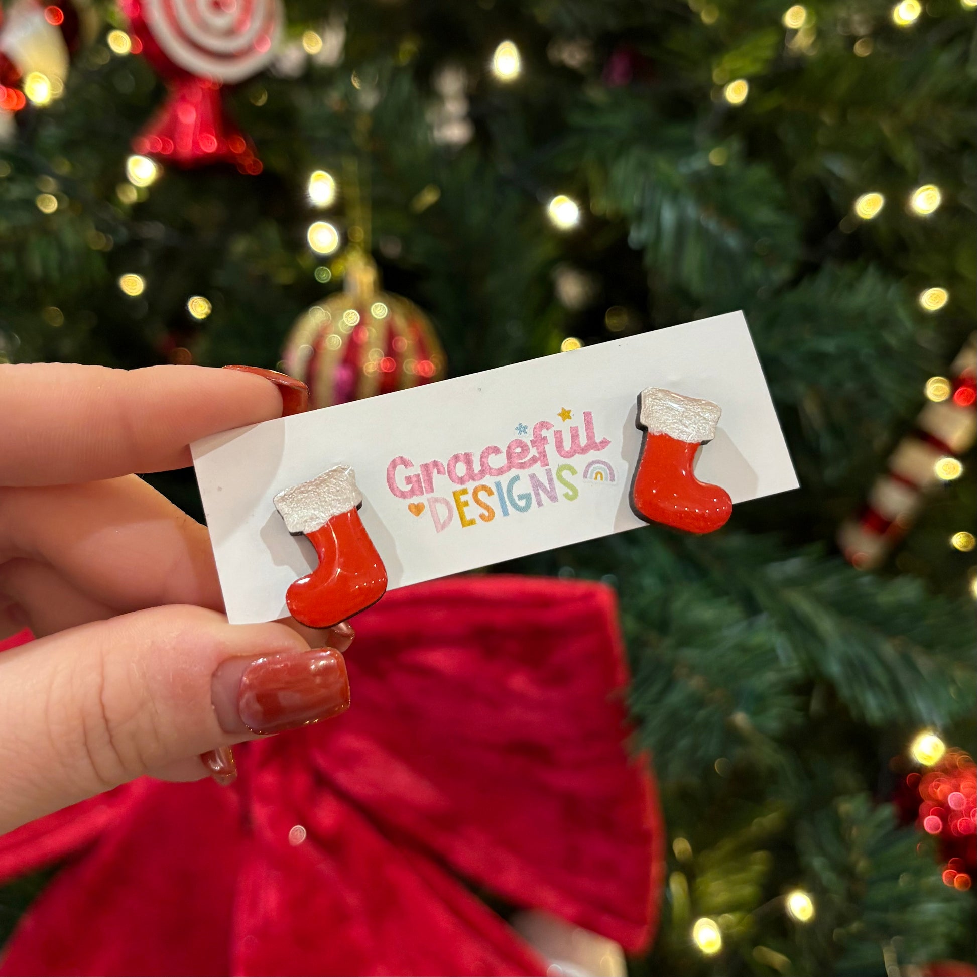 Deck the halls (or your ears) with our Classic Red Stocking Studs! These mini 2cm stockings are handpainted with love and adorned with a glossy resin top coat. A festive touch to any outfit, Santa himself would be jealous!