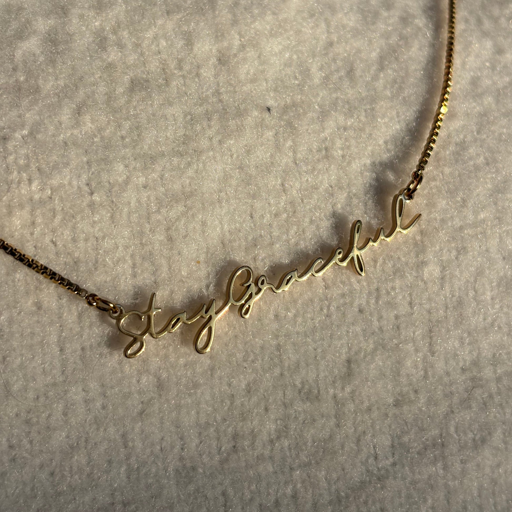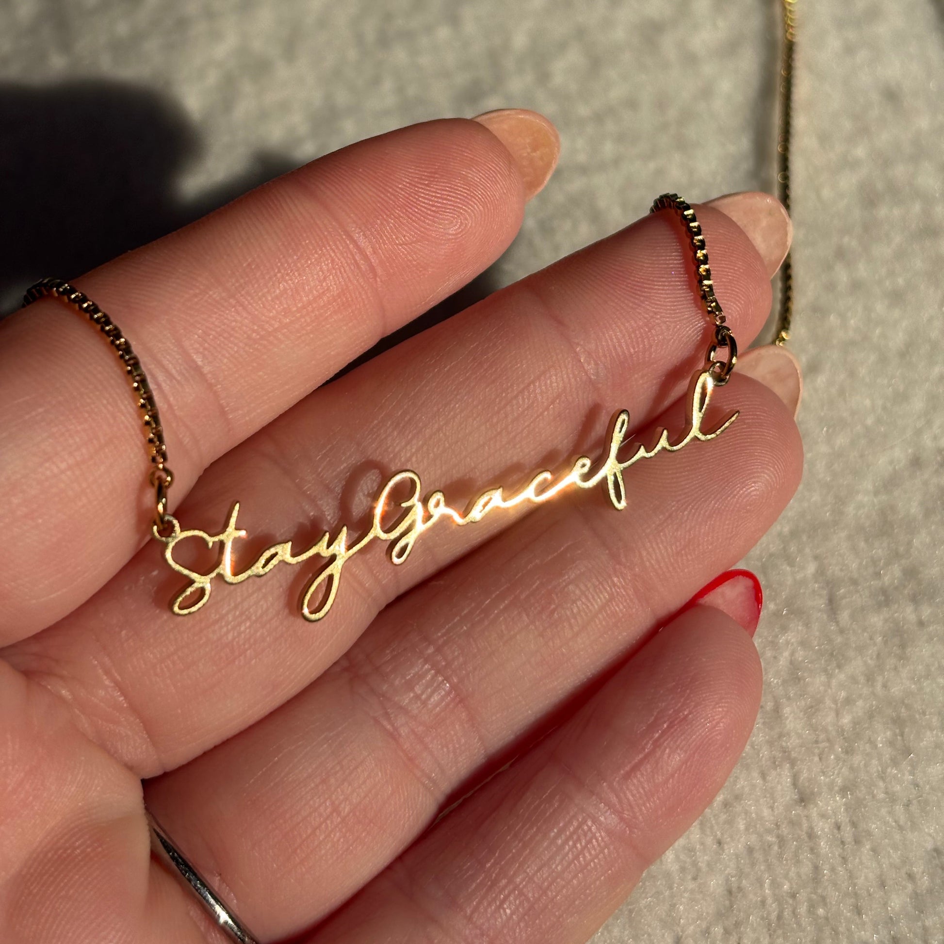 Crafted in a dainty script font on a matching chain, this necklace sits beautifully with any outfit. Whether you’re treating yourself or gifting a Graceful Bestie, it’s a sweet, wearable daily reminder to stay kind, stay soft, stay you 💕